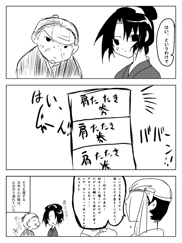 完 ……………最後まで付き合ってくれた皆様有難う御座いました!! そして… すいまっせえぇぇぇぇぇぇぇえええん!! こんだけ時間かけておま…っ 何この投げやりな最後!!! ちょ…コレだけ時間かけてページ描いて何コレ オチが肩たたき券って!! ←5の9へ 企画部屋へ戻る メインへ