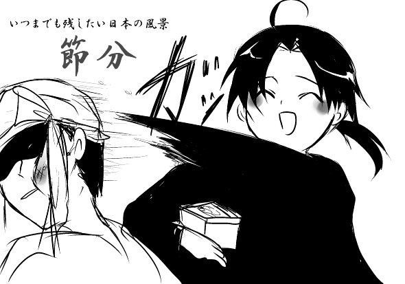 にこやかにお豆を投げつける先生がほほえましい絵ですね。